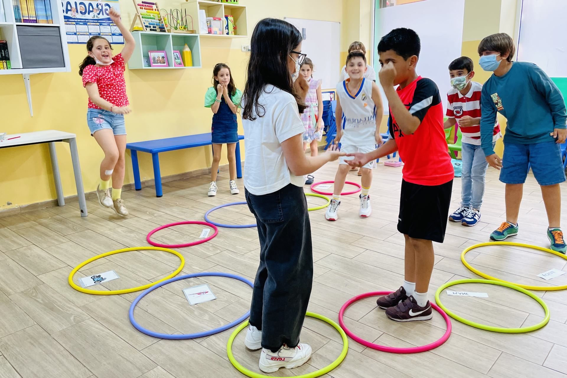 Los más pequeños aprenden jugando, cantando y moviéndose. Las clases son activas, con rutinas claras y materiales diseñados para pasarlo bien aprendiendo.